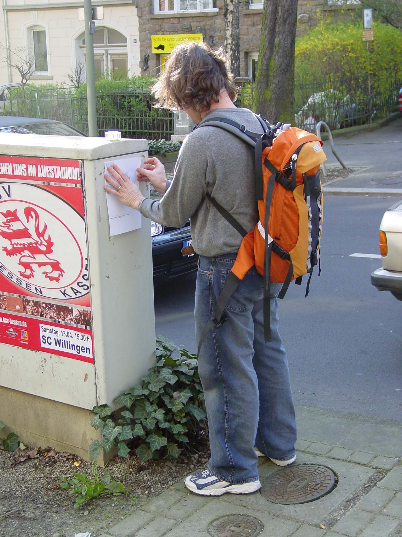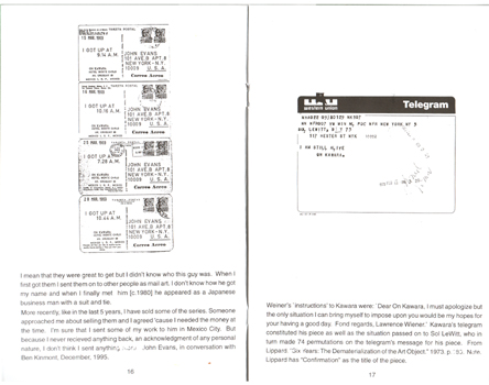 Flyers: 11 x 8 ½ inches and printed in black ink with black and white photographs on white paper with the exception of the Universität Kassel flyer which is 8 ½ x 5 ½ inches and printed in black ink on blue paper (in some sets), all preserved in a 13 x 10 inch white San Francisco Art Institute mailing envelope printed in black ink with the title of the project stamped in red ink, edition size unknown.