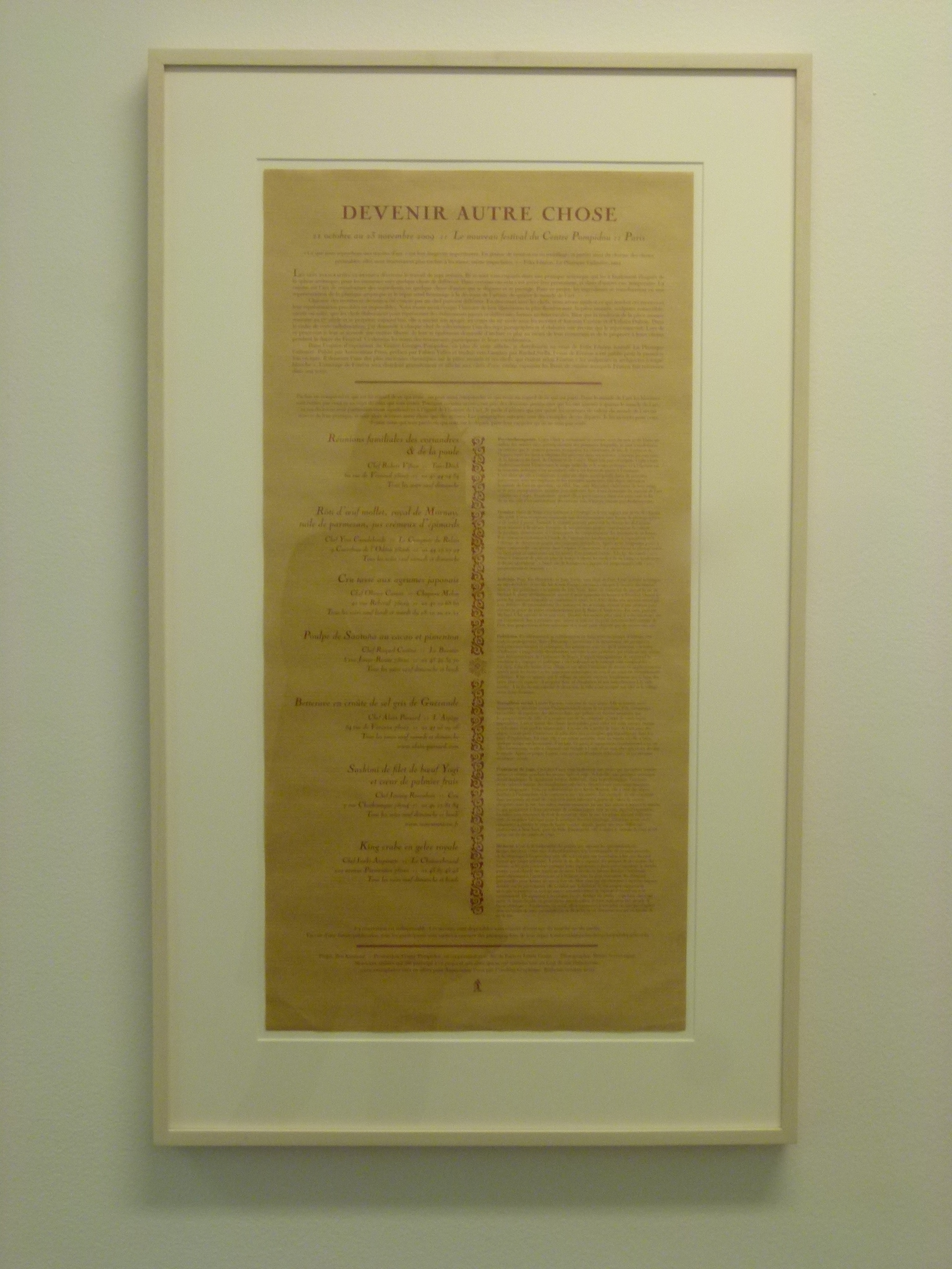 Second Edition, second issue. Includes the first ever translation into English of Fénéon’s essay La Plastique Culinaire (translated by Rachel Stella). Printed for the San Francisco reactivation of On becoming something else and distributed at the final dinner at Bar Tartine on 18 June 2013. Enclosed (for the first time) in a large manila envelope with the Antinomian Press logo stamped in red ink and a frontispiece image of Grimod de la Reynière stamped in black ink. In French and English. 145. ON becoming something else. Berkeley: Antinomian Press, 10 May 2013.